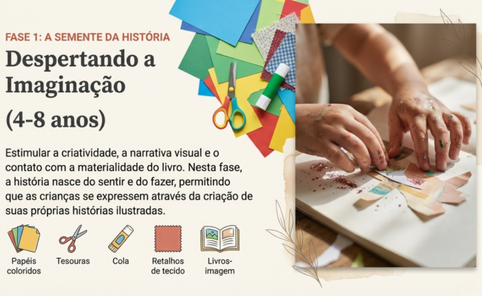 Objetivo: Estimular a criatividade, a narrativa visual e o contato com a materialidade do livro, permitindo que as crianças se expressem através da criação de suas próprias histórias ilustradas.