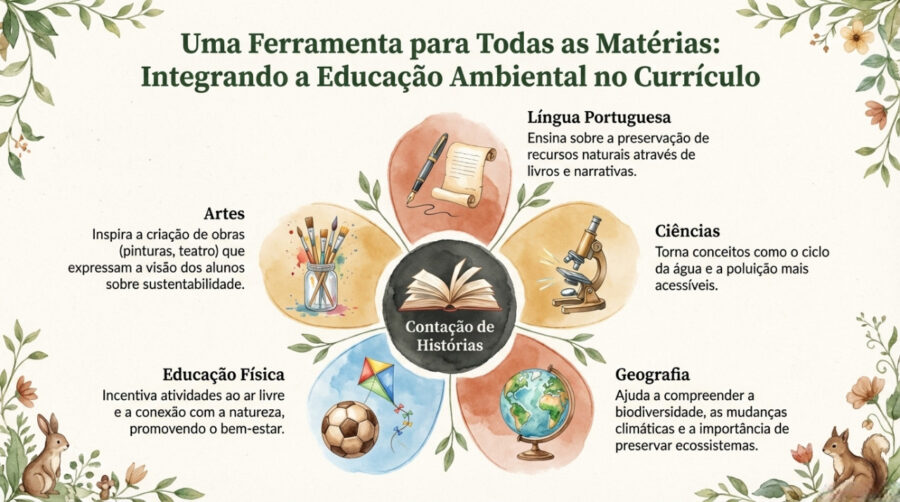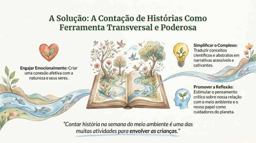 Contar histórias é uma ferramenta transversal e poderosa para a educação ambiental, capaz de engajar os crianças e promover a reflexão sobre sua relação com o meio ambiente. A contação de história, ao ser integrada a diversos campos do saber, ela facilita a compreensão de temas complexos e estimula a conscientização, tento na educação infantil quanto na formação global das crianças. De forma resumida, a aplicação ocorre da seguinte maneira: