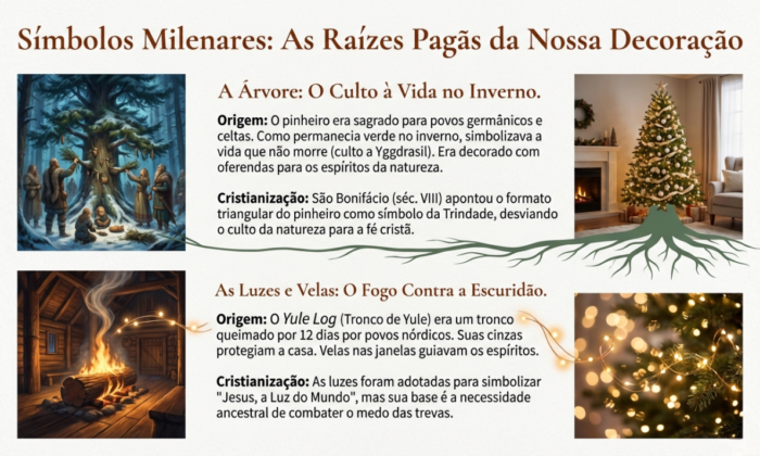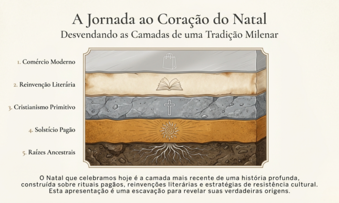 O Natal que conhecemos hoje é uma sobreposição de camadas históricas. Muitas das tradições que consideramos cristãs nasceram de rituais de sobrevivência ao inverno e celebrações do solstício, onde o homem tentava garantir que o sol voltaria a brilhar após os dias mais escuros do ano.