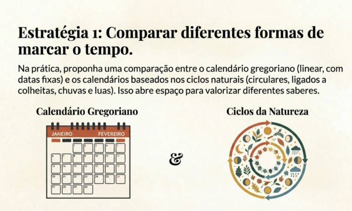 organizavam o tempo a partir de outros referenciais simbólicos: ciclos da natureza, ancestralidade, espiritualidade,
