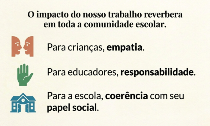 essa experiência fortalece a empatia; para os educadores, reafirma a responsabilidade