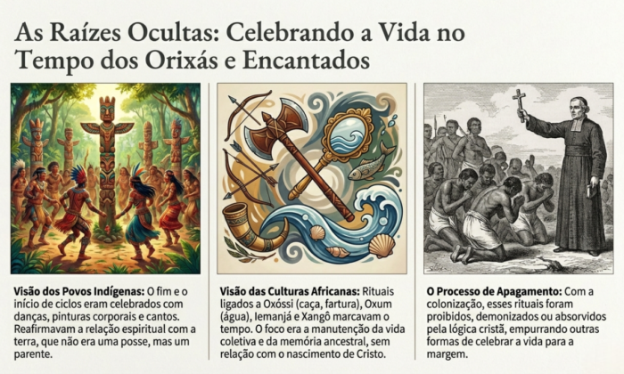 No entanto, antes da consolidação do calendário cristão no território que hoje chamamos Brasil, povos indígenas e africanos